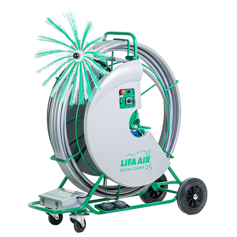 The Hydmaster is the most powerful HVAC electrical brushing machine designed for demanding cleaning practices within industrial sized buildings such as factories, power plants, and mills. The Lifa Hydmaster performs the most strenuous tasks using hydraulic power. The Hydmaster brush speeds past the competition with a rotating speed of 0-800 r/min. It operates on monophase voltage, which means the Hydmaster is quieter than other pneumatic cleaning machines. The Lifa Hydmaster cleans 75 meters of duct when extended in both directions from one access hatch and its oversize brushes can rotate in narrow ducts.